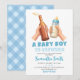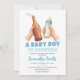 Blue Hand Drawn Minimalist A baby Boy is brewing Inbjudningar