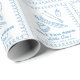 This cute and modern ski theme "Ski you soon little one" boy's baby shower wrapping paper features hand-drawn illustrations in soft blue, including skis, poles, a beanie, and a sweet baby bottle—framed by a playful curly doodle border on a crisp white background. A unique and charming choice for parents-to-be who love the slopes, ski lodge coziness, and celebrating in winter style.