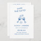 Blue Hand plockade Whimsical Bröllop spara datum Inbjudningar