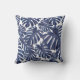 Dekorativ kudde i blått och vitt färg. Den här utformningen är en fantastisk sommarträdgård mönster med söta och moderna handflatan löv. Så mysigt för ditt hem, eller som en gåva! Sommar stil för stranden och avspänning i den tropiska djungeln.