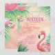Coola handflatan lämnar och rosa flamingos. Den här inbjudan är lätt att anpassa för evenemanget genom att helt enkelt lägga till information.