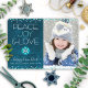 Blue Hanukah Peace Joy Kärlek Quote Photo Snowflak Julkort