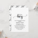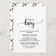 Det här blåhjärtklappade svarta kalligrafin "det är en pojke"-inbjudningskort är perfekt för en strålande eller modern babydusch. Den minimalistiska utformningen för ett pojke har modern typografi och ett subtilt pastellblått hjärta. Baksidan har ett klassiskt löv och grenar mönster.
