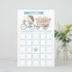 Önska dina gäster med den här roligten babyduschbingo-spelet med en vattenfärgshingg på en blå cykel, och dra en blommigt vagn under en banderoll av typen "Baby Bingo". Gästerna fyller i varje ruta med presentidéer och markerar sedan av dem under presentöppningen - först till fem i rad vinner! En perfekt för trädgårds-, skogs- eller pojkmatade babyduschar.