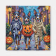 Vuxna blå Heelers klädda i lekfulla Halloween-kostymer bär pumpfickor medan man lurar eller behandlar under månbelysta himmel. Denna festliga utformning belyser rasens spektakulära blå jacka, vassa ögon och energiska personlighet, som på ett perfekt sätt fångar upp den förevändning och roligt som halloween-natten har. Ett livligt firande för hundälskare och Halloween fläkt.