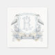 Blue Heron Specialty Monogram Crest customizable monogram napkins. With a place to customize a name or date on the ribbon below the crest.