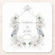 Blue Heron Waterfowl White Blommigt Etheral Bröllo Underlägg Papper Kvadrat