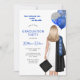 Hon trodde att hon kunde, så hon bjöd in studenten-tjejen. Den blonda hårkvinnan student med blå silver glitter-ballonger, studentmössa och gäss för klass 2024. Lägg till gradens foto på inbjudan. Perfekt för högskoleklasser, högskoleklasser eller universiteten, underklasser eller högskoleklasser i student.