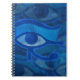 Spiral foto anteckningsbok med Horus ögat strukturerad blå abstrakt design. Denna design har Horus öga i blå nyanser på urblekta Horus ögon i bakgrunden.