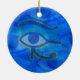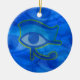 Keramiska prydnadsföremål med Öga av Horus texturerade blått med guld abstrakt konturdesign. Den här designen visar Horus Öga i blå toner på faded Horus Ögon i bakgrunden.