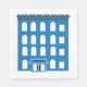 Utanför det blå hotellets framsida med många fönster. Den här designen ser ut att vara effektiv på dessa Pappra servetter