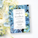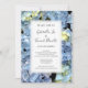Inbjudan gäster till giftermål med söt Blue Hydrangea Blommar Bröllbjudan. Den här elegantens bröllopsinbjudan till anpassningsbarna innehåller ett digitalt målat fotografi av en blommar av blåblomma i blommigten. Perfekt för en sommarträdgårdsceremoni och mottagningsevenemang i party giftermål. Finns som en utskriven inbjudan att skicka eller som en digital nedladdning för att enkelt kunna dela digitalt online.