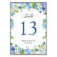 Blått Hydrangea Blommigt Bröllop Bordsnummer Card. (1) Anpassa mallen en efter en (t.ex. från nummer 1 till xx) och lägg till varje nummerkort separat i kundvagnen. (2) Om du vill göra ytterligare anpassningar klickar du på länken "anpassa ytterligare" och användor verktyg som är utformat för att ändra mallen. (3) Kontakta mig om du behöver hjälp eller matchande artiklar.