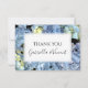 Skriva ett uppskattningsmeddelande för gåvor som mottas efter en sommarträdgård i party, möhippa eller giftermål med söt Blue Hydrangea Blommigt Bröllop Flat förlovning. Tackkort i elegantens anpassningsbar har ett digitalt målat blommigt-foto av en blå blommar av vattenblomma.