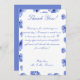 Tack gäst för att du närvarar vid din speciella dag med den här designen som innehåller ett speciellt meddelande mot en bakgrund av blå vattentäkter. Det här objektet koordinerar med alla andra objekt i samlingen Blue Hydrangea Blommigt bröllop suite.