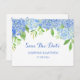 Blue Hydrangea Blommigt Greenery Spara datum Meddelande Vykort