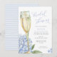 This beautiful design features blue hydrangea blooms, a gold champagne glass and your custom text. Use the template form to add your information.