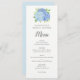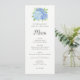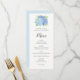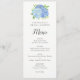 De här menykorten i möhippan har blå vattenblommor. Du kan ändra texten stilar och färg genom att klicka på knappen "Anpassa". Matchande produkter är tillgängliga.