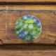 Dekorteckningar och skåp med dessa keramiska knop som har en fotobild av blått och grönt, unga Hydrangea-knoppar. En underbar, blommigt design! Använda om lådor och skåp för att lägga till stänk i färg eller för att komplettera befintlig dekoration.