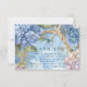 An elegant coastal wedding design featuring soft blue hydrangeas, woven nautical rope details, delicate seashell accents, and an airy ocean-toned watercolor background. The composition blends botanical romance with subtle seaside elements, creating a refined coastal look that feels timeless rather than themed.