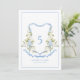 Blue Hydrangea Crest Monogram Card Inbjudningar