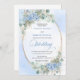 Blue Hydrangea Greenery Gold Oval Wedding Invite Inbjudningar