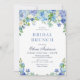 Blue Hydrangea Greenery Watercolor Möhippa Brunch Inbjudningar