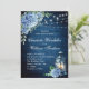 Blue Hydrangea Lantern Navy Wood Bröllop Inbjudningar
