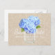 Blue Hydrangea Mason Burk Bröllop spara datum Meddelande Vykort