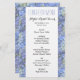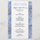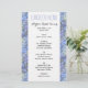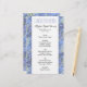 Prisvärd, blå luncheon-meny för alla tillfälle. Blommigt gräns på sidorna med svart text i mitten. Modern hög text överst, med bruds namn och duschdatum/tillfälle. Använda för möhippor, bröllopsreceptioner, förlovningsfest eller tillfälle som behöver en söt, blommigt-meny. Anpassa varje textmallsavsnitt enkelt på storlek 5 x 8-tums papper.