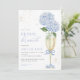 Blue Hydrangea Möhippa Brunch Guld Champagne Inbjudningar