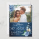 Blue Hydrangea Navy Wood Lantern Photo Bröllop Spara Datumet