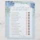 Blue Hydrangea "Han sa, hon sa" Möhippa Game 💙 lägg till en roligt och interaktiv beröring till möhippan med detta blå Hydrangea "Han sa, hon sa"-spel! Det här spelet är ett perfekt för förlovadens gäster och firar paret lycklig. Det har elegant vattenfärgsvattenmiljöer, mjuka grönområden och tidlösa blått. Hur spelar du? Tjuvgäster gissar vem som sa varje påstående - bruden eller brudgummen! Ett lätt spel som utlöser skratt och roligt minnen. perfekt för trädgårdsodling party, elegant duschar och klassisk firande. Den här möhippans favorit är ett måste-ha för en chic och minnesvärd händelse. Den är utskriven på ett högkvalitativt kartonger och vackert designad! 🌿 💙