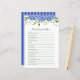 Den här Hitta någon som spelar möhippa lakan kommer att ge möhippan mycket roligt och skratt! Det kommer att få gästerna att resa sig och lära känna varandra när de försöker hitta någon som passar in i var och en av de 20 kategorierna. Det här spelet är ingen enkel uppgift, och dina gäster kommer att spela det med en smäll! Du blir chockad över vad du lär dig om varandra och bruden. Sidan är vacker med blåa vattenområden med flera huder, naturlig grön och matchande blå stripe bakåt. Det är perfekt för vilken boho, rustik, botanik, blommigt, trädgård, romantik, vintage eller formellt bröllop.