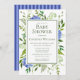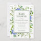 Blue Hydrangeas Blommigt Vattenfärgsbabyskor Inbjudningar