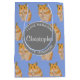 Den här presentsäcken har en söt blå hamster mönster-design, med en fluffy hamster på blå bakgrund. Ni kan lägga till ett namn till denna utformning, som också har en text som säger "I kärlek Hamsters"