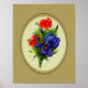 Blåblå iris och rödblommor bouquet vintage reproduktion blommigt poster utskrift.