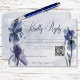Lägg dina gäster i rätt tid med vårt fängslande svarskort från bröllop med en QR-kod. Djupa blå iriser, som är målade i en halvgenomskinlig vattenfärg, tvättar ram på ett snyggt sätt texten på båda sidor och lägger till en aning sofistikerad charm. Den eteriska blomningen står vackert mot den blå vattenfärgen tvättar bakgrunden och skapar en känsla av ofruktbar skönhet. Kortens baksida fortsätter att tvätta den blå vattenfärgen, som återger blommigtens motiv och tillför en aning modern lyx. Denna fantastiska svit lovar att lämna ett bestående intryck, som perfekt återspeglar det förfinade romantik i er bröllopsdag. Skapat av Farmhouse Press.
