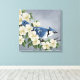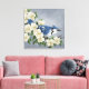Blue Jay-fågel i blommar dogwood gren med mjuk blå himmel i bakgrunden