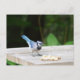 Ett foto av Blue Jay på min picknick bord som får en jordnöt.