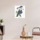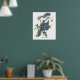 Den här utskriften visar tre blå jays, två honor och en man. De har stulit ägg från en annan fågels bo och de är pergamerade i en träd som äter äggen. Den blå kajen är en av de vanligaste fåglarna på bakgårdarna, men det är lite besvärligt för de andra häckande fåglarna på gården.