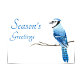 De briljanta blåa nyheterna hos denna blå kajs fjädrar visar sig djärvt mot den vita bakgrunden till detta enkla men ändå intressanta julkort. Det skulle vara ett vackert kort för en speciell vän, särskilt en som har fågelskådning. Jag blev inspirerad att måla den här blåkajen på grund av "Bertie", en av de många blå kajar som kom besöker oss varje dag. Insidan av kortet lyder: "Önskar en hoppfull julhelg i år", och det finns en mindre bild av ett blått kö nedan.