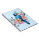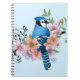 En blå jay omgiven av blommor som ritats i en tatuering stil.