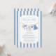 Celebrate the joyous arrival of your little girl with our "Blue Jean Baby" baby shower invitation. This charming card features soft denim details like cute baby clothes and trendy stripes as background.