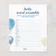 I samband med Blue Jean Baby-samlingen är det här Baby-Ord-skandalspelet enkelt + roligt för alla åldrar - bara ofruktbart så många baby-relaterade ord som möjligt! All text är anpassade för att exakt matcha informationen i tillfälle ↣ klicka bara på knappen "Anpassa". Blanda med andra spel i samlingen under en fullt av roligt! *SVAREN VISAS I "" I SKÄRM I "PERSONALISERA".