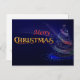 Ett färgat vykort för jul med ett blått Julgran tillverkat av stjärnor, med ett God jul hälsning i rött och guld.