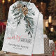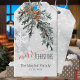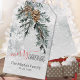 En vattenfärgad snöskog med isig med detaljmålad snöflingor och nyklippta träd-boughs och gräs-cones juniper gren, markerar denna märkre för gåva från God jul som innehåller ett alternativ för namn och datum/år.