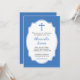 Den här söta Baptismen eller Christening-inbjudan innehåller ett blått kor och texten i ett ornat ram, som är inställd på en blå bakgrund. Din personlig avslutar din inbjudan i ett matchande blått och ett veckat vitt kor på baksidan.