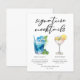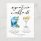 This cute signature mocktails menu sheet features 2 drink drawings and their ingredients for your wedding bar or pool party. A Blue Lagoon and non-alcoholic Lemon Drop for a trendy bar menu with your customized event text.