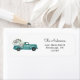 Returadressetikett med hand plockade vattenfärgsblått lastbil fyllt med vattenfärgspumpor. Anpassa med ditt namn och adress.